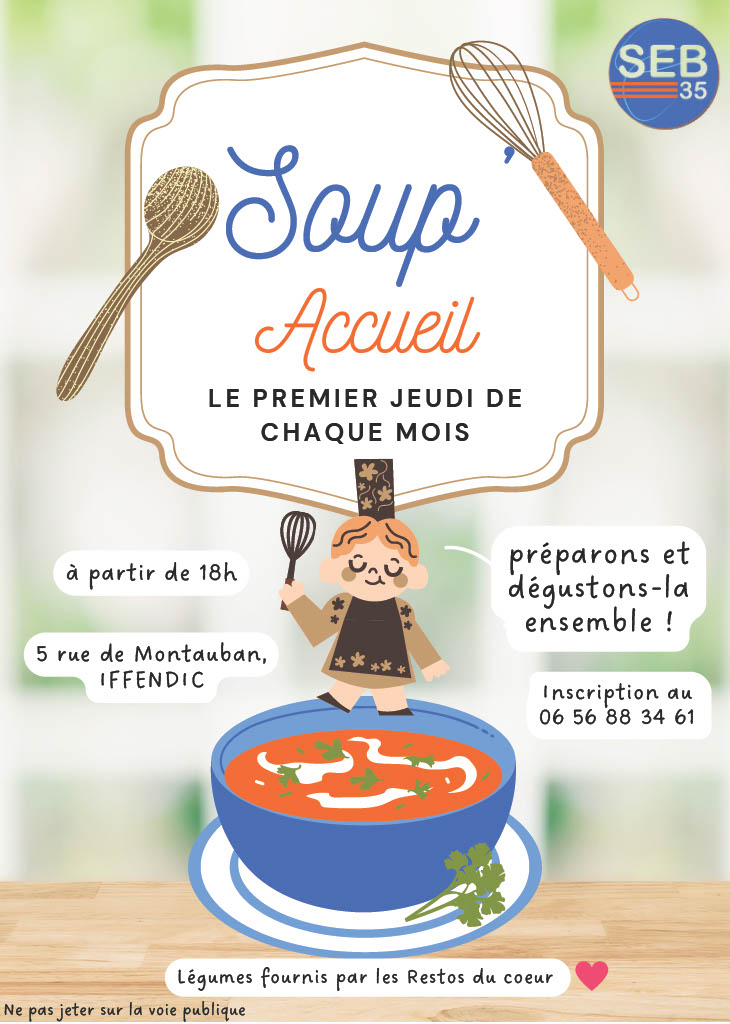 – La Soup’accueil, un rendez-vous mensuel pour cuisiner et partager une soupe à partir des légumes écartés par les Restos du cœur et de produits locaux, dans une ambiance chaleureuse.